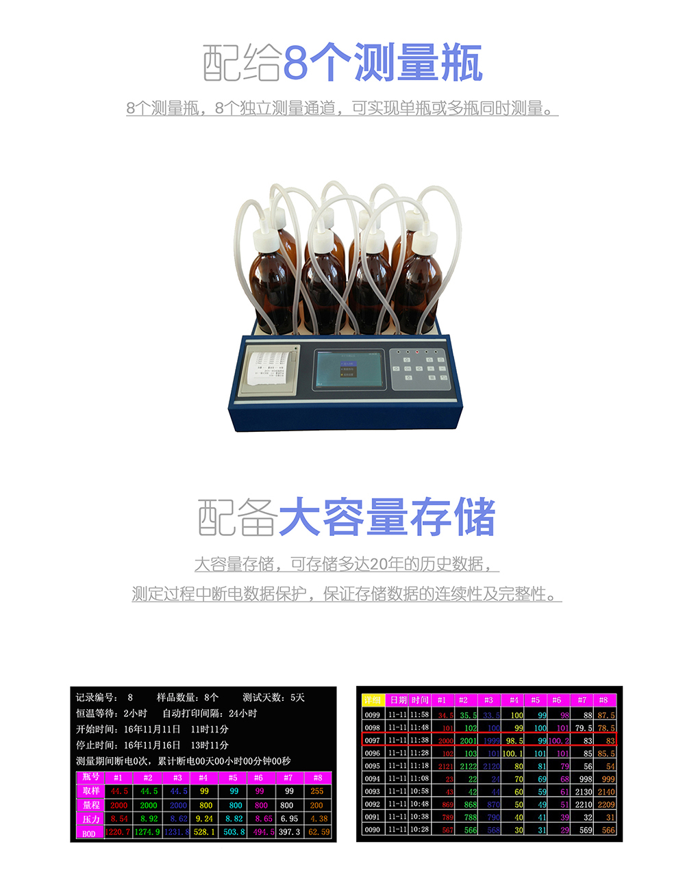 7、 8個(gè)測量瓶,8個(gè)*立測量通道。