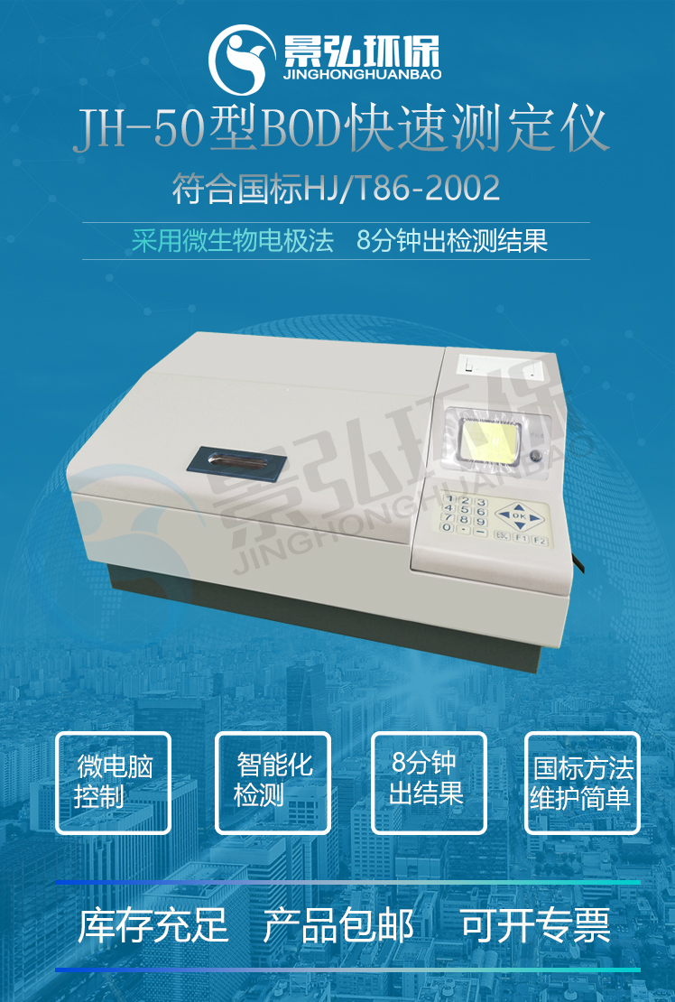 JH-50型BOD快速測定儀采用微生物電*法,能快速測定水樣中的BOD值,而且操作簡便,測量準(zhǔn)確,測定速度快,適用于測定地表水、生活污水、不含對微生物明顯毒害作用的工業(yè)廢水中的 BOD。