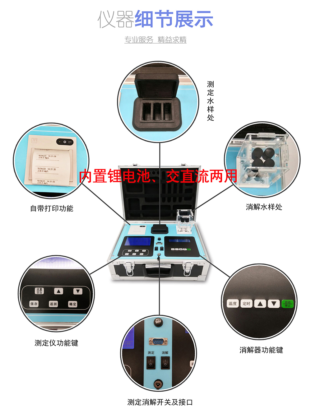 14.儀器內(nèi)置直流電源,鋰電池供電,可實(shí)現(xiàn)多批水樣加熱消解及比色測定。