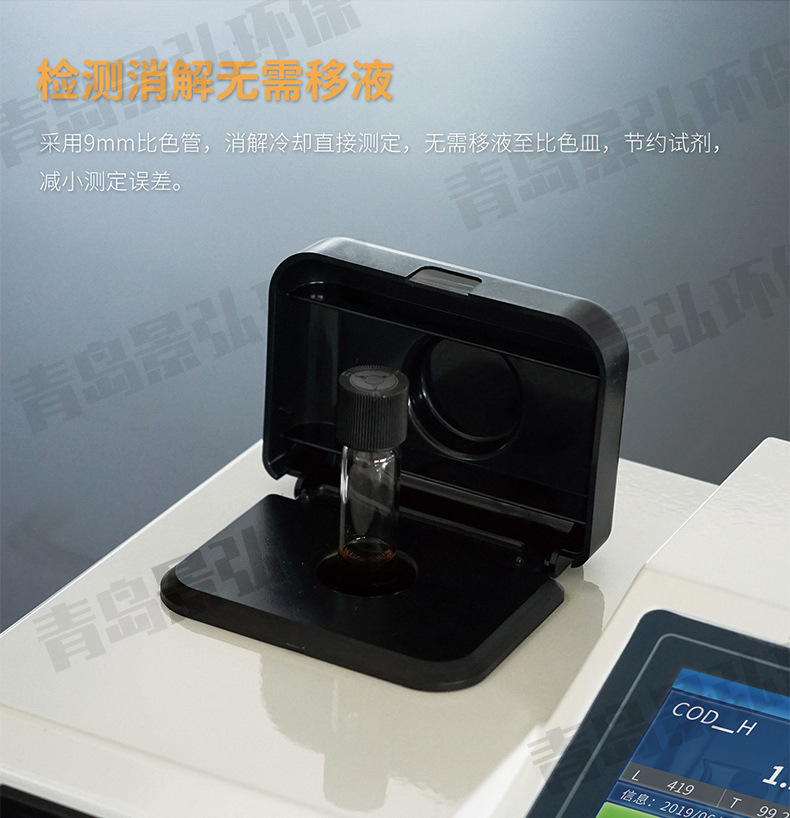 6、采用消解比色一體管,使水樣測定過程簡單、快速、安全,測量結(jié)果準(zhǔn)確。