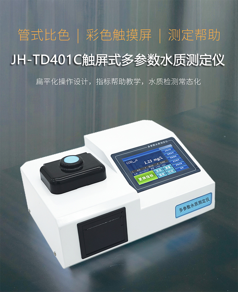 JH-TD401C型彩色觸摸屏多參數(shù)水質(zhì)測定儀采用觸控式設(shè)計(jì),全中文操作界面,引導(dǎo)式系統(tǒng)操作,精巧的整機(jī)設(shè)計(jì)結(jié)合高強(qiáng)度耐腐蝕外殼,提升了用戶的使用及操作體驗(yàn)。消解比色一體管設(shè)計(jì),預(yù)存指標(biāo)參數(shù)曲線,使整個(gè)檢測過程更加簡單便捷,更易于使用者上手操作??蓮V泛應(yīng)用于環(huán)保環(huán)境監(jiān)測、科研水質(zhì)檢測、生產(chǎn)排放監(jiān)察檢測等領(lǐng)域。